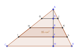) y además sabemos que la altura AM del triángulo ABC queda dividida en 4 partes iguales por los puntos D, E y F