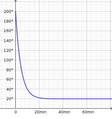 La temperatura de un pastel que se saca a enfriar de un horno a 200 grados centígrados, es una función del tiempo (medida en minutos) dada por