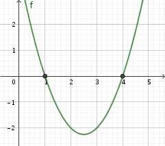 Después de resolver la ecuación de segundo grado y obtener las soluciones 1 y 4, podemos dibujar la parábola ![]()