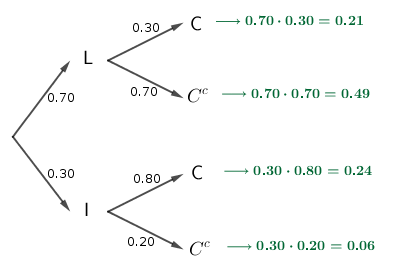 El 70% de los clientes de un supermercado realizan las compras en el local y el resto de los clientes las realizan por Internet. De las compras realizadas en el local, sólo el 30% supera los 100 €, mientras que de las realizadas por Internet el 80% supera esa cantidad.