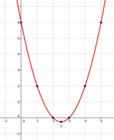 Para dibujar la parábola calculamos vértice, orientación, corte con los ejes (hecho en el apartado anterior) y, si es necesario, algunos puntos más.