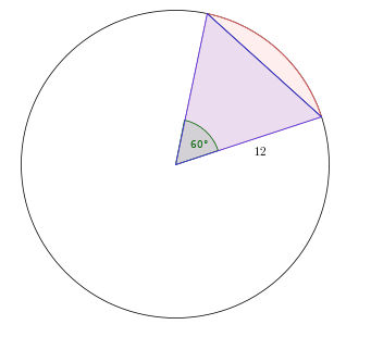 Al ser un sector de 60º origina un triángulo equilátero: los 3 ángulos son de 60º y los 3 lados miden 12 cm (el radio de la circunferencia).