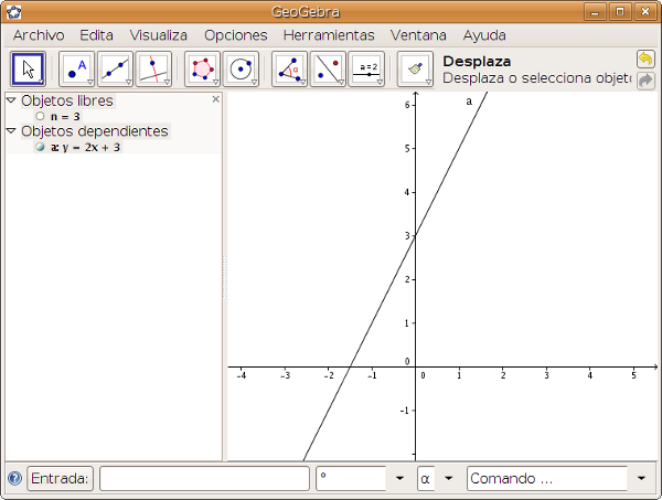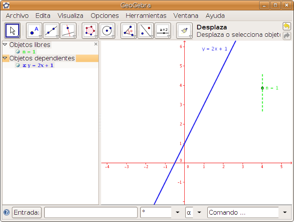 2) Introducimos y=2x+n mediante la entrada algebraica