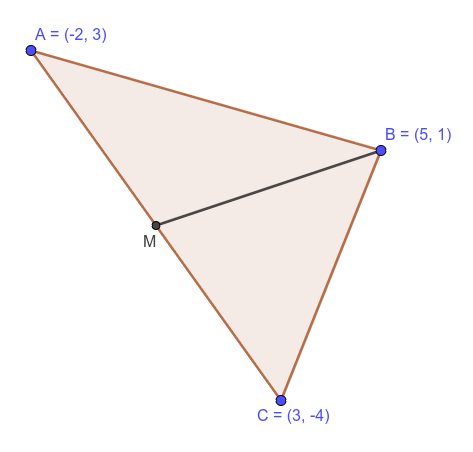 , halla la ecuación de la mediana correspondiente al vértice ![]()