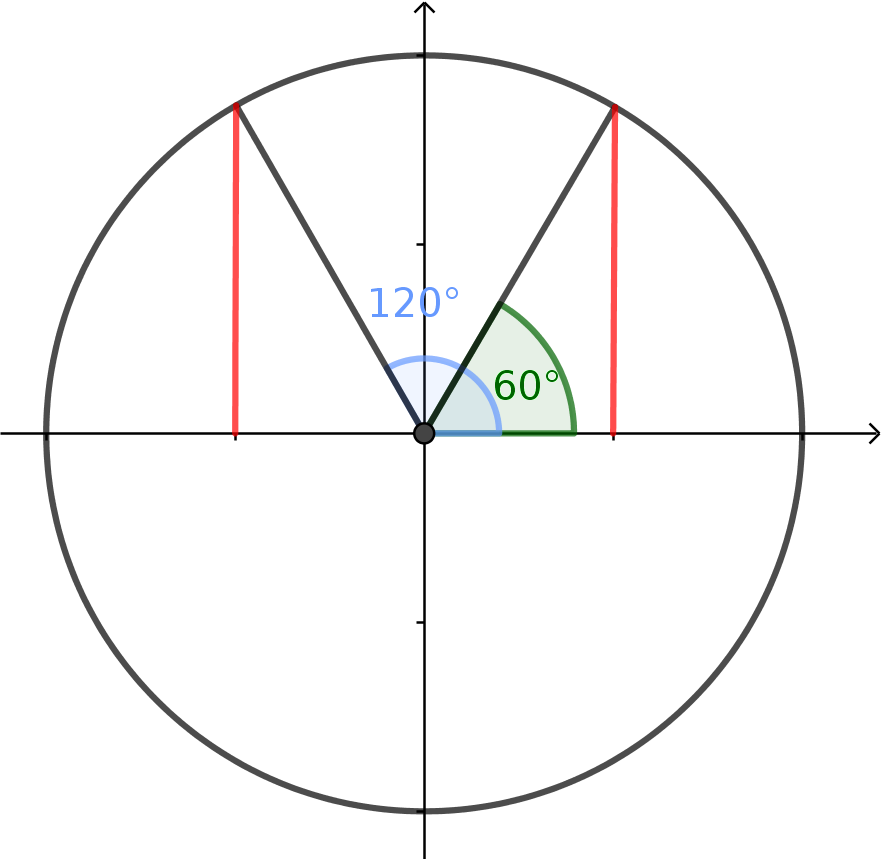 Vemos que 120 tiene el mismo seno que 60 (línea en rojo).