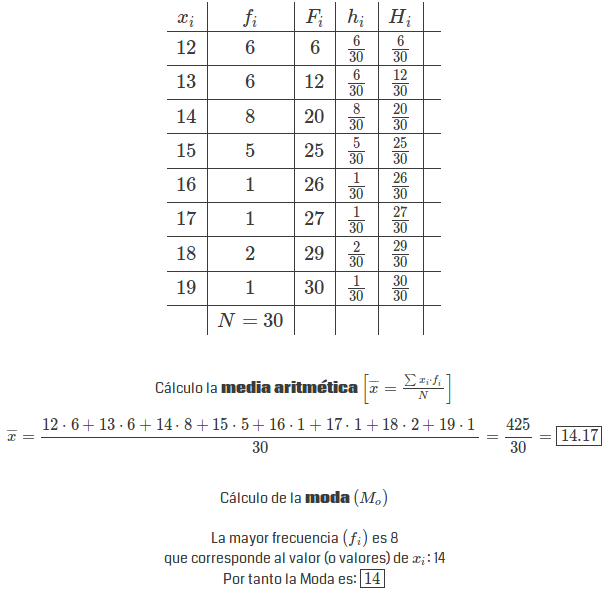 Calcula la edad media y la moda.