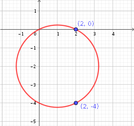 Hallar la ordenada de los puntos de abcisa 2 que pertenecen a la circunferencia