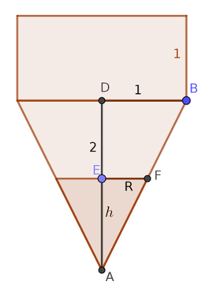 Observe que el Radio es 1 y que a la altura hay que restarle los 2m del cono