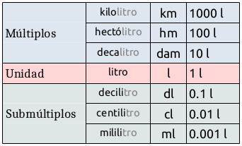 Litro. Múltiplos y submúltiplos